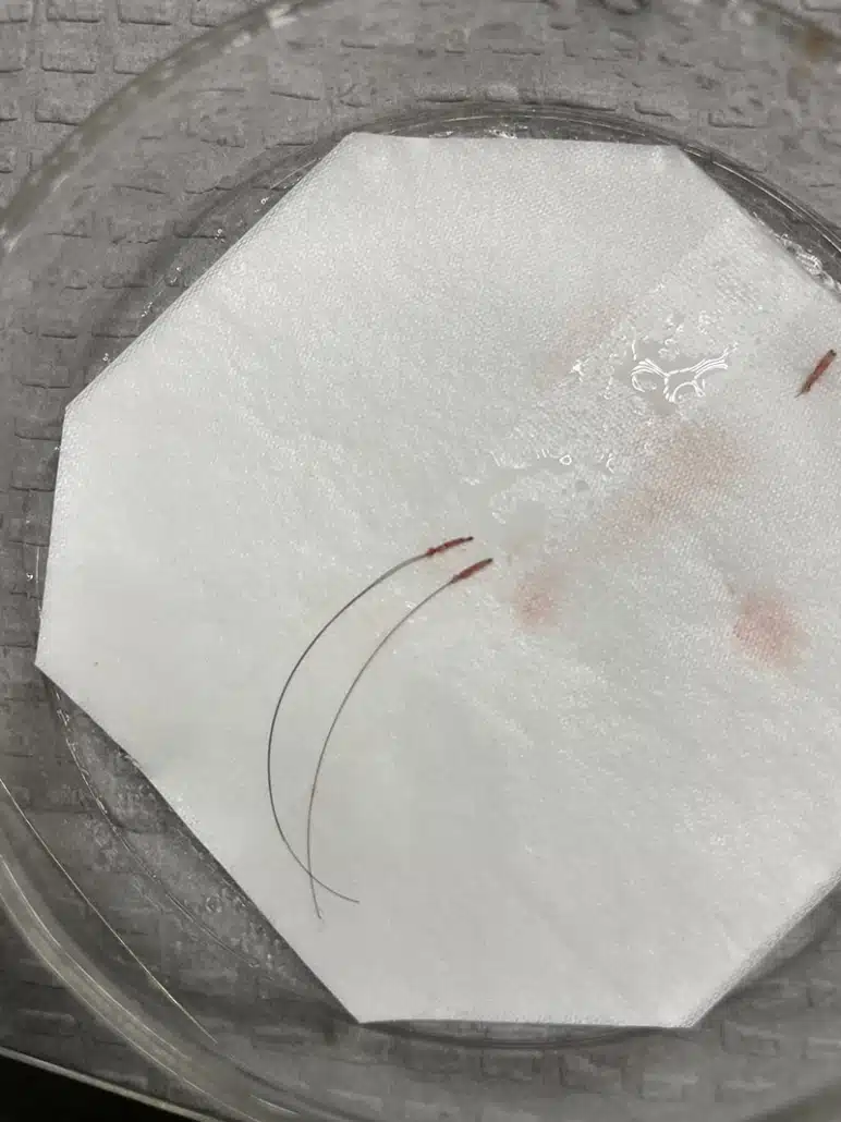Harvesting hair grafts from other parts of the body besides the back of the scalp is a much longer process due to these others areas being more sensitive and delicate. However, this method can be used when the back of the head is exhausted and the patient still needs more grafts for increased density, filling in a larger scar from a previous procedure, or covering the crown area. Because it is coarser, this hair isn’t usually transplanted to the frontal hairline. It is used to add thickness a little way behind the hairline or at the crown.