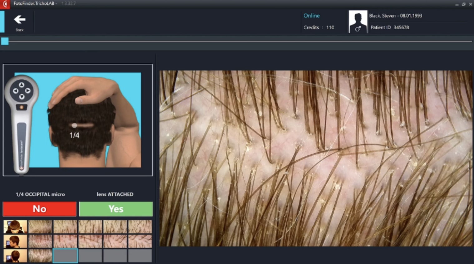 The Trichoscopy Report is based on the evaluation of a set of videodermoscopic images of the scalp. These images are subject to an automated computerized image analysis. Advanced pattern recognition algorithms allow to automatically detect and precisely specify hair, hair follicles and other important objects visible in the images. Detailed data on hair and hair follicles are then used to define key statistical factors of the trichoscopic method. The procedure is quality assured by manual inspection of each image for maximum accuracy. Algorithms and computation methods used by TrichoLAB are continuously improved and the experience gained with each performed test allow to enhance the testing precision.
