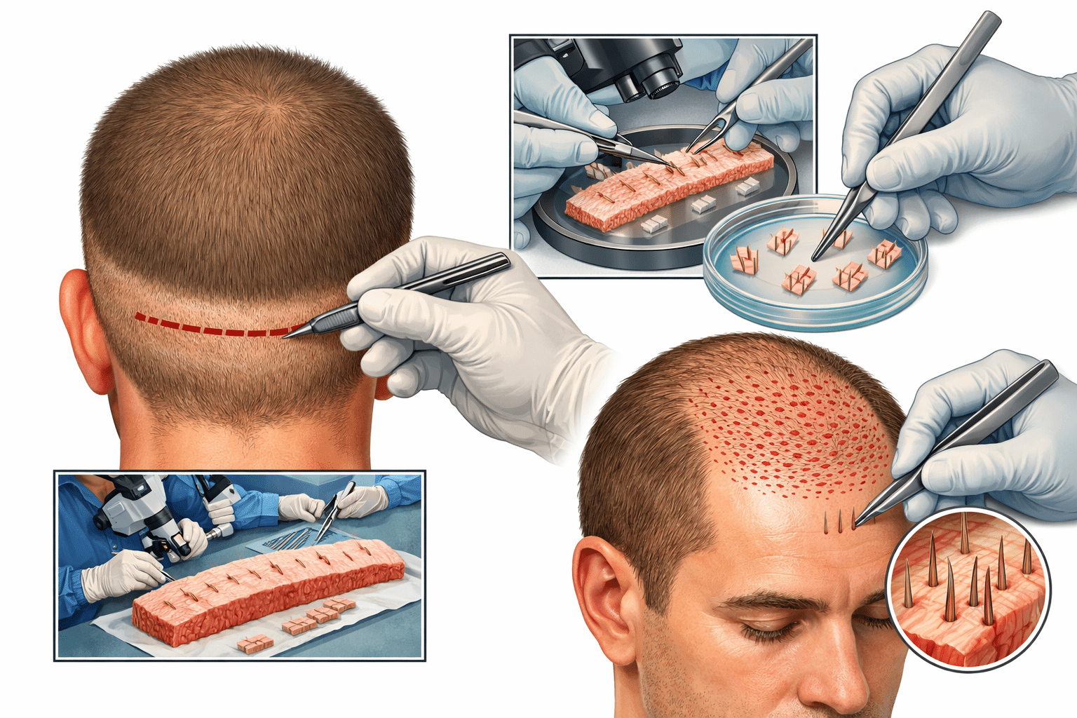 FUT involves surgically removing a strip of scalp from the donor area, usually the back of the head. The strip is then dissected into individual follicular units and transplanted into thinning or balding areas. This technique predates FUE and was once considered the standard approach to hair restoration.